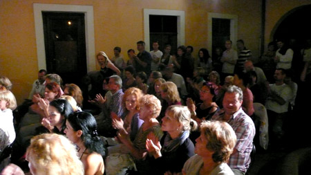 Nádvorie bolo vypredané, v zadnej časti sa stálo. Príjemný koncert. Asi lepšie by bolo dať kúsok videa, ako ukážku, ale to už by sme sa asi dostali do sporu s autorskými právami. Kto máte chuť, na Youtube sa dá nájsť z iného koncertu ukážka, napríklad z pesničky Podvod.