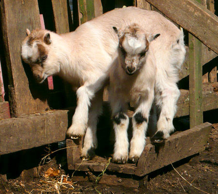 Kým jedno kozliatko stojí, druhé sa chce priamočiaro dostať na druhú stranu.