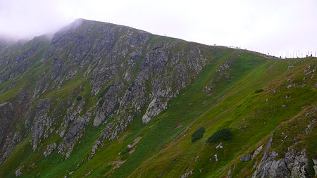 Ešte vás čaká kus cesty, kým budete na Chopku. V skalách hory na obrázku vľavo sa okom jastraba dajú nahmatať hnedé škvrnky.