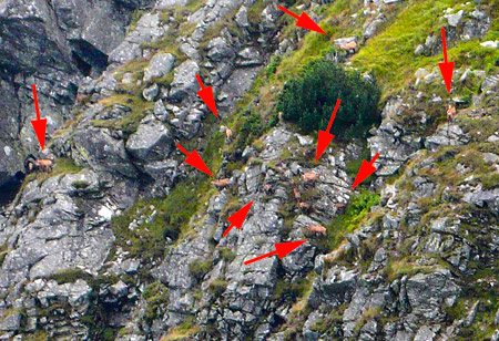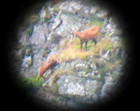 Až trasúci sa pohľad prezradí, že pre obveselenie turistov tu stádo kamzíkov spása trávu a možno aj endemity.