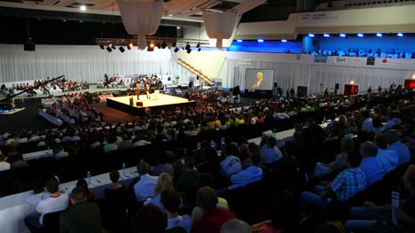 Pohľad na sálu, v Inchebe, počas seminára Jacka Canfielda. Húfiky kamier dávali tušiť, že so záznamom z tejto akcie sa asi ešte budeme mať možnosť časom stretnúť.