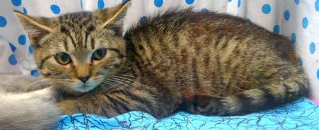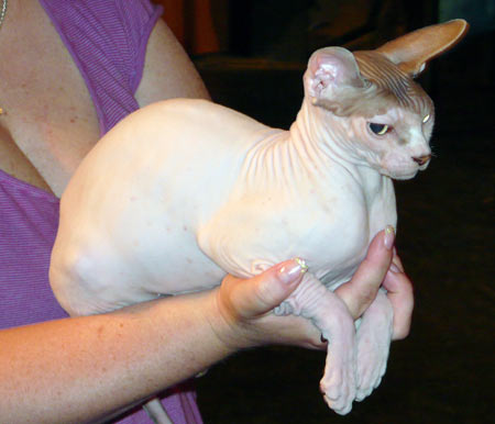 Najkrajšia mačka z výstavy bola hneď v prvej klietke. Niekoľko návštevníkov si popod fúzy šepkalo čosi o afroaziatskom rodokmeni mačky psačej. Ale dosť sa pritom uškierali.
